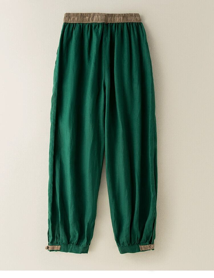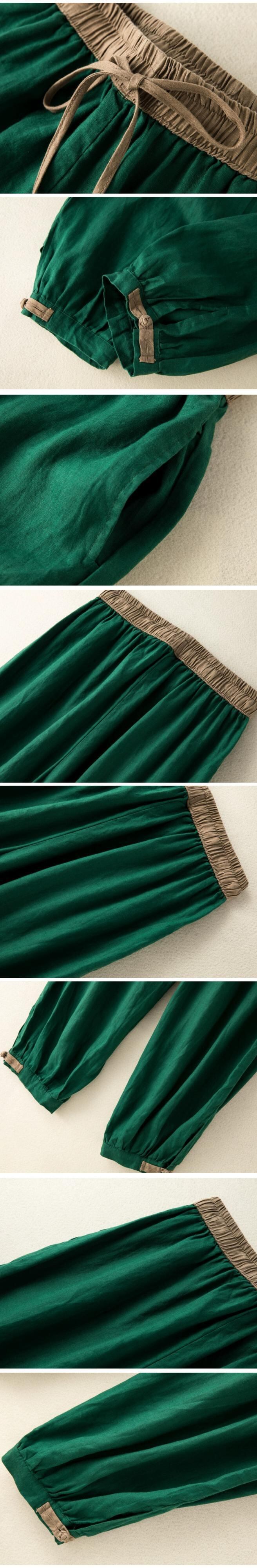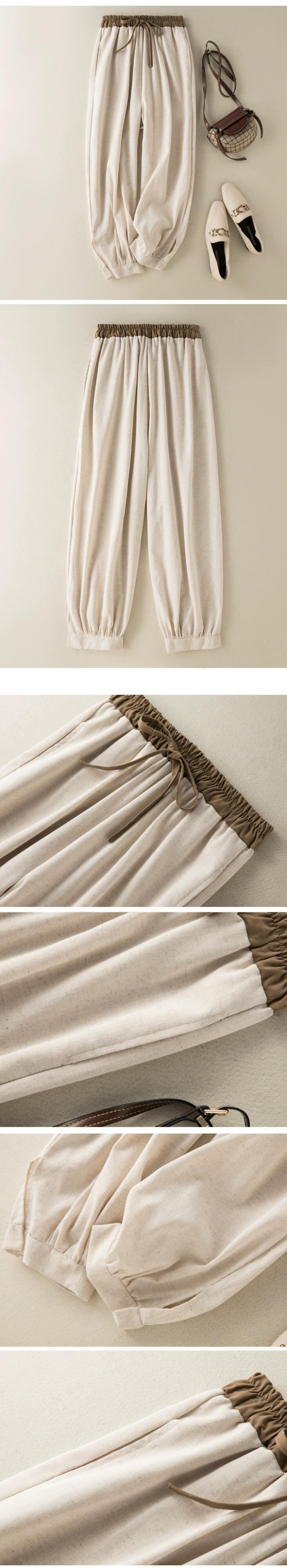 eign trade ese オリジナルシングルビッグネーム撤退コットンとリネンレギンスハーレムパンツ女性ハイウエストレースアップリネンカジュアル 9 ポイントスウェットパンツ sine53991546569