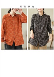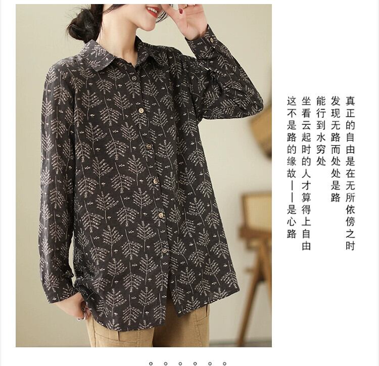 ディスカウント ストア ショッピング モール レトロ プリント長袖レディース シャツ ルーズでスリムなシングルブレストのコットンとリネンのトップ ロング sine39657944010