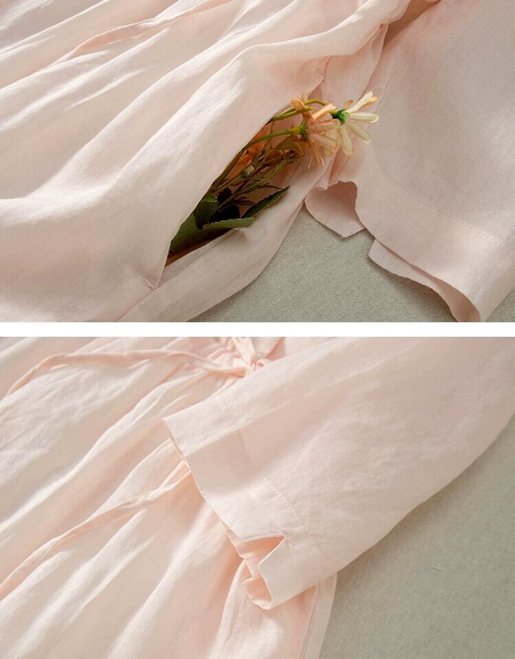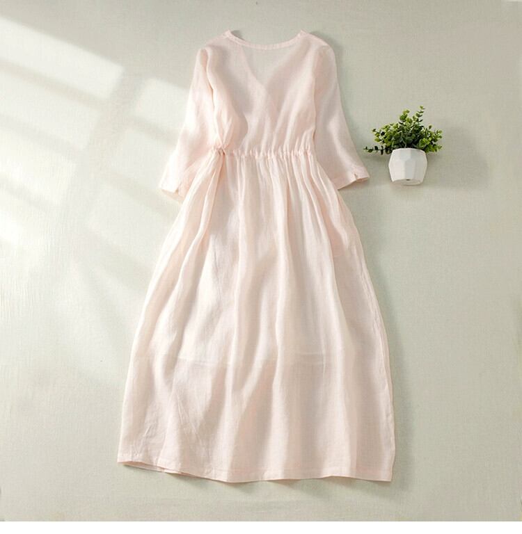 第一線の有名ショッピングモールの割引レディースウエストプリーツラミーローブ七分袖トラベルコットンリネンドレス sine75226003909