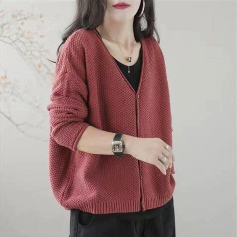 ese とオリジナルのシングル eign trade 有名なテールグッズの女性の無地多用途 V ネックセータージャケットレトロなルーズ長袖トップ ロング Vネック ソリッドカラー sine99128083945