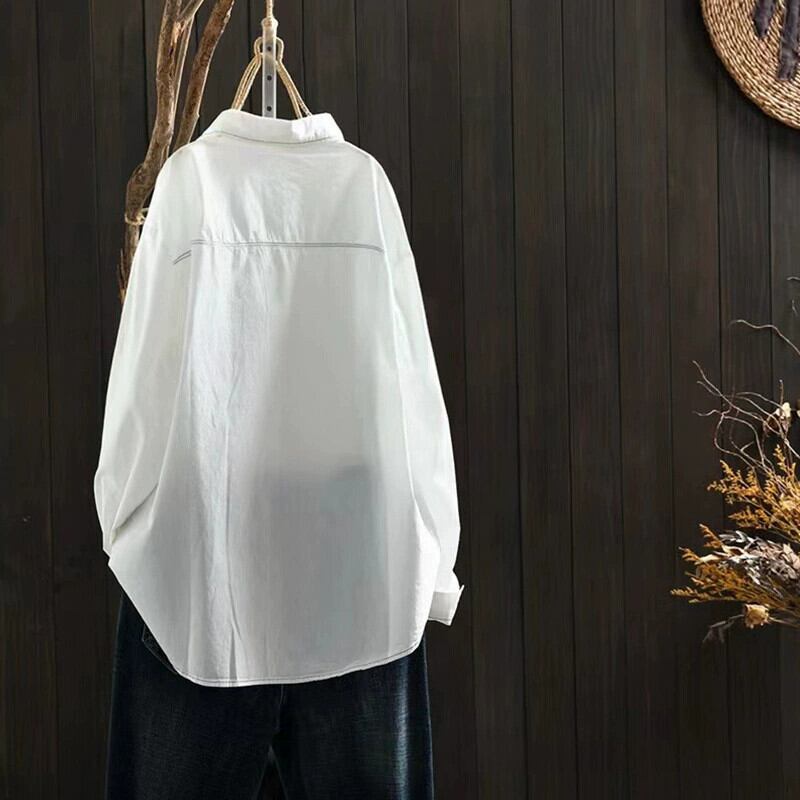 漏れを拾ってください!有名製品の女性、シンプルで汎用性の高い純綿のトップス、ゆったりとしたスリムな長袖の白いシャツのカウンター削除 ロング ホワイト コットン ピュア sine60000214546
