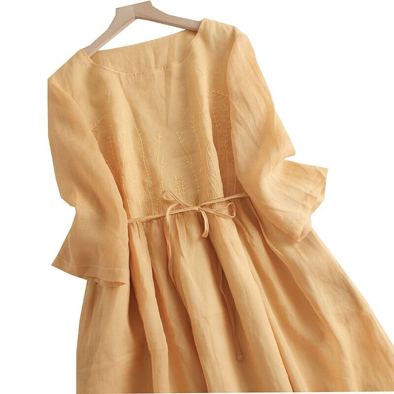 クリアランスリーク〜eseオリジナルのシングルレディースエレガントで妖精のようなラミースカートとゆったりとしたコットンとリネンの七分袖ドレス sine19865766703