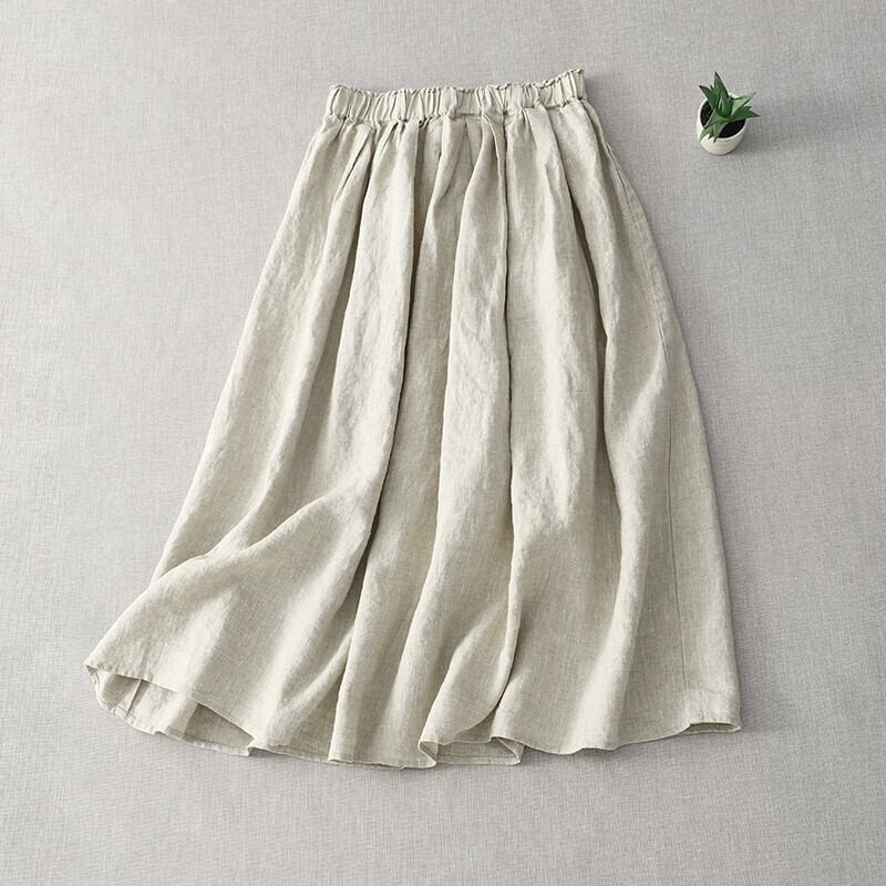 カウンタークリアランスクリアランスレディースレトロリネンAラインスカート夏薄いハイウエストコットンとリネンスカート サマー 夏物 sine8739285395