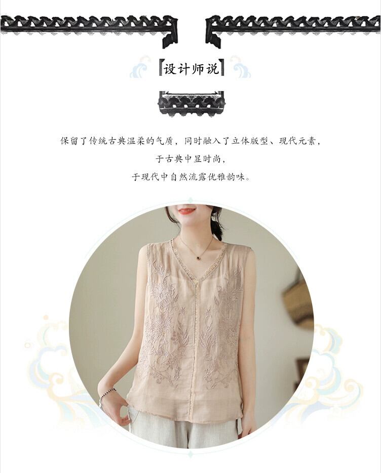 キャトルクリアランス 高級品 綿麻 刺繍キャミソール レディース インナー 薄手リネン ノースリーブ トップス 夏 レッド コットン サマー 夏物 sine58409903918
