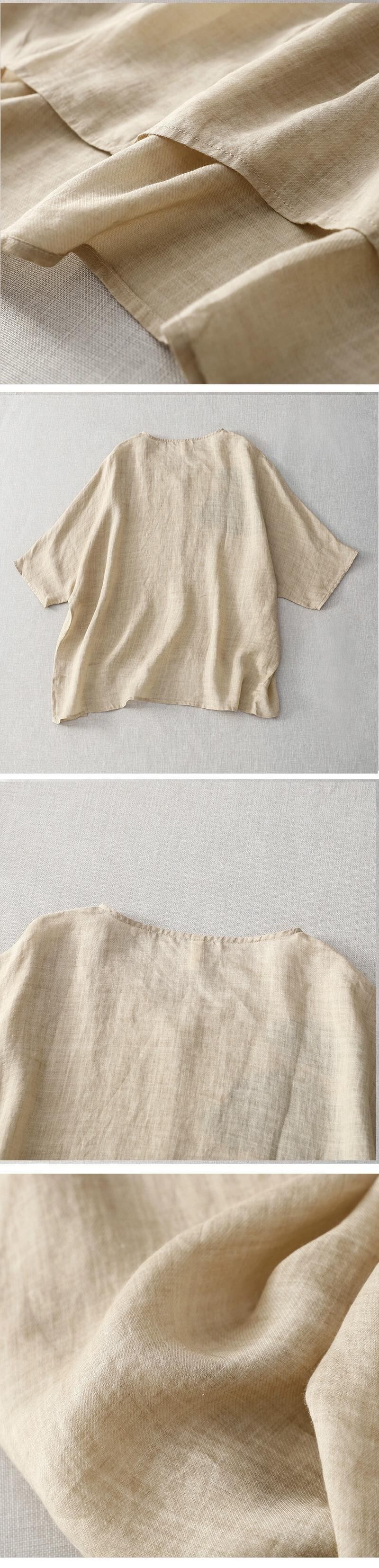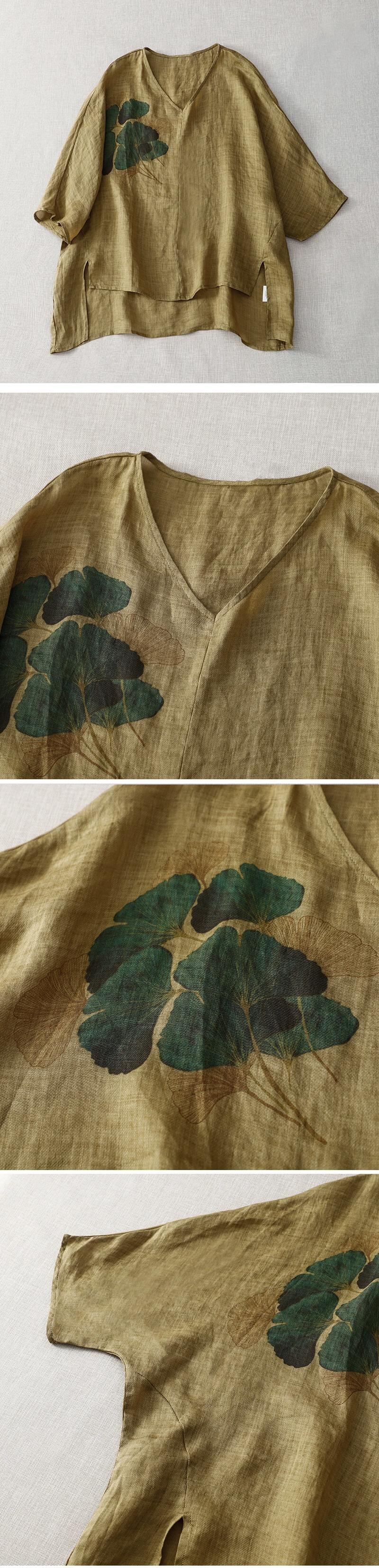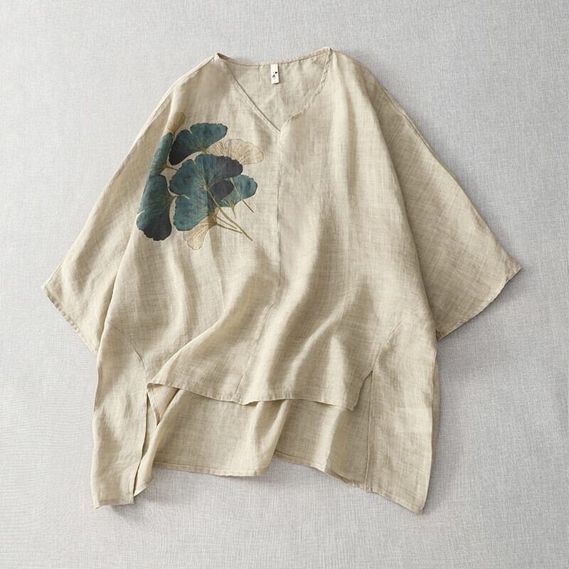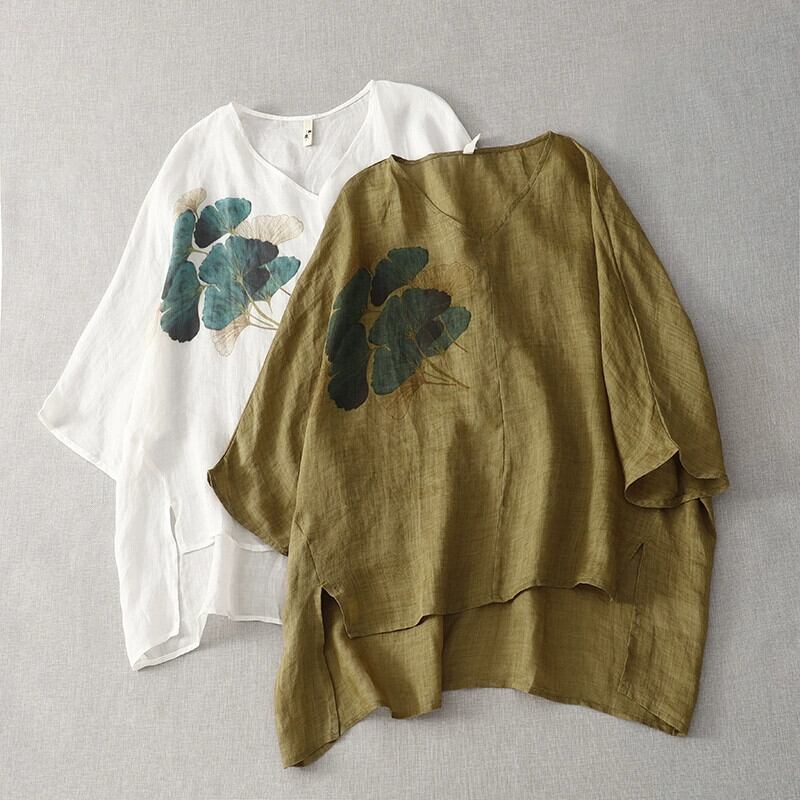 Eign Trade Export Last Order Cut Label ese プリント ラミー V ネック トップ レディース 夏 ルーズ コットンとリネン 半袖シャツ Tシャツ サマー 夏物 Vネック sine98795316108