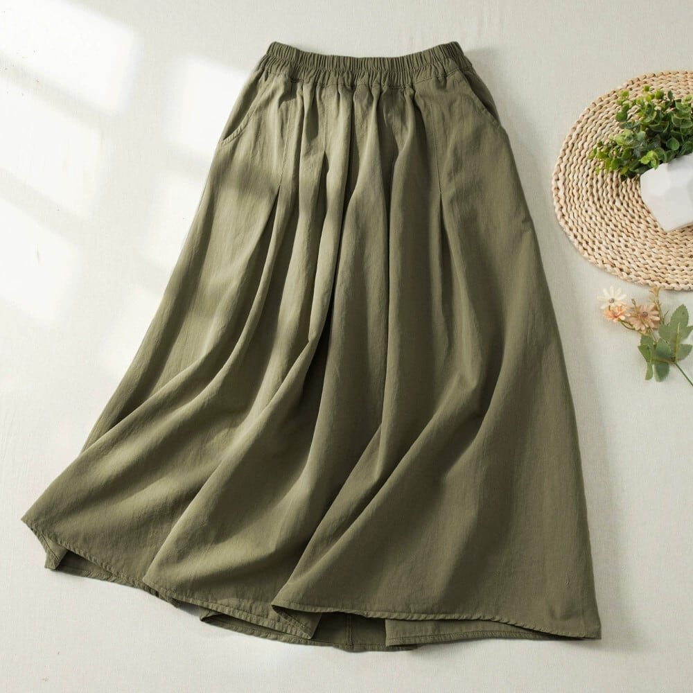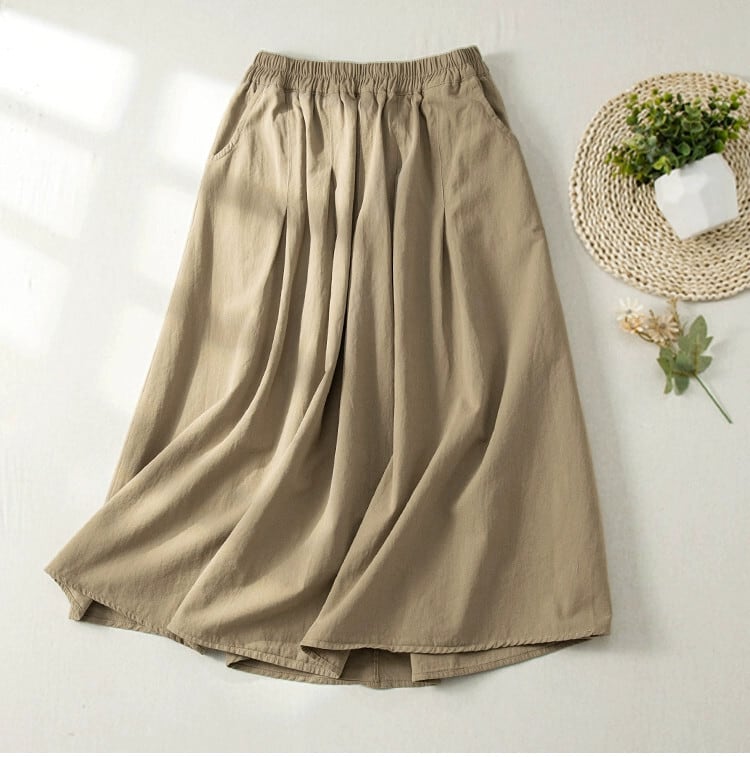 eign trade ese 有名カウンターグッズ レディース ソリッドカラー 万能 A ライン スカート レディース ルーズ ハイウエスト ミドル丈 スカート Aライン sine49943639500
