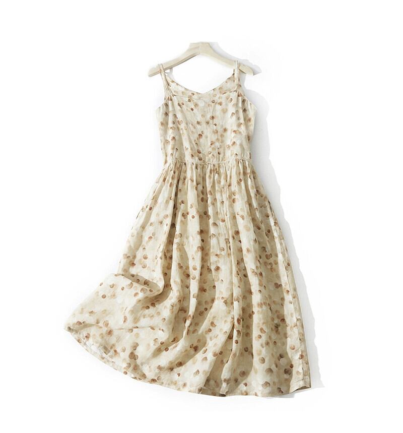 クリアランスリーク〜eseオリジナルシングルリネンベストロングスカートレトロウエスタンスタイルプリントノースリーブ綿麻サスペンダードレス コットン sine40626353529