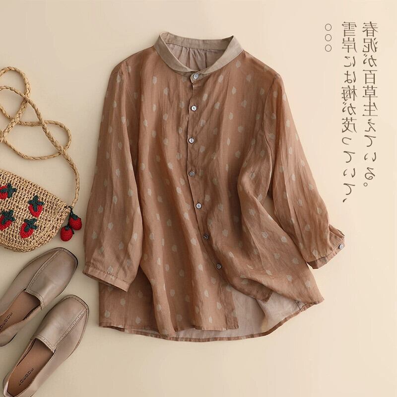 クリアランス漏れ ~ カウンターからの最後の在庫、女性用のエーゼスタイルの水玉ラミートップ、ゆったりとしたカジュアルなリネン長袖シャツ ロング sine39113698819