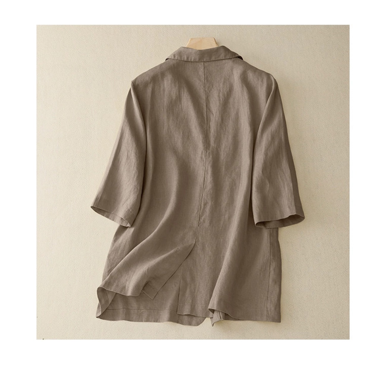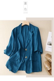 第一線ブランド eign trade 撤退最終在庫レディースコットンとリネン半袖スーツカラージャケットルーズリネンスモールスーツトップ薄い sine30985889554