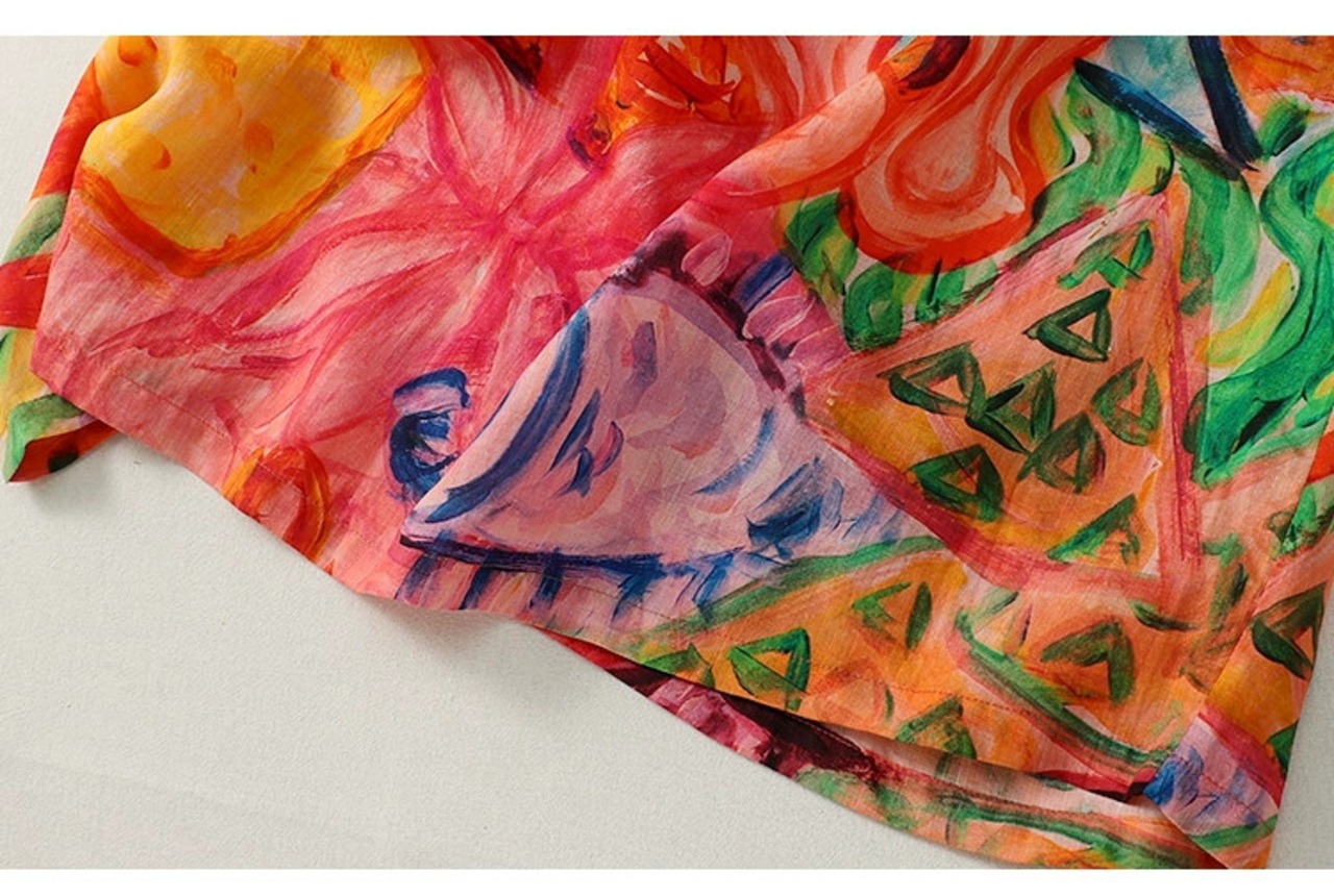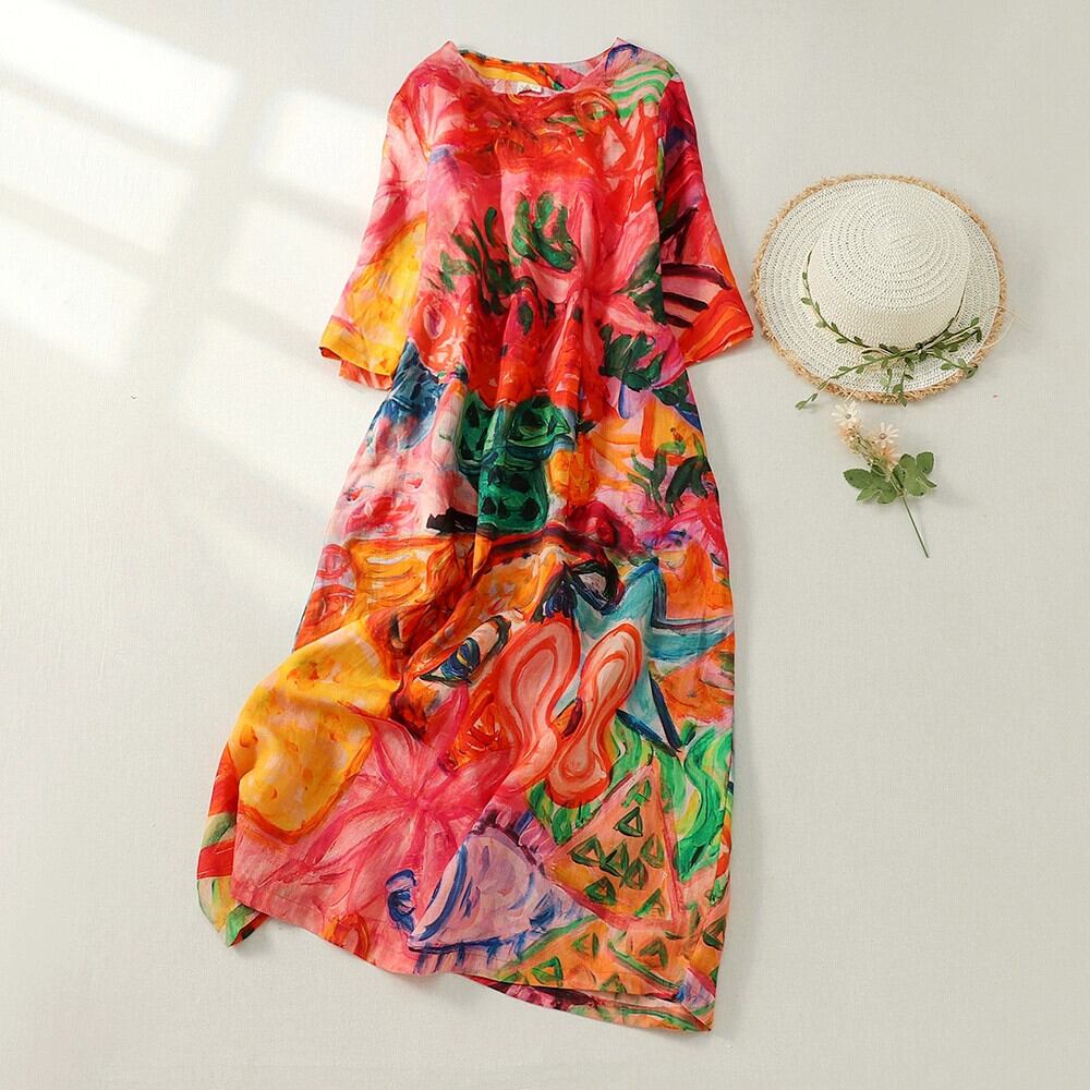 永貿易輸出ビッグブランドテール商品撤退女性の旅行綿とリネン半袖ドレスルーズ落書きプリントリネンロングスカート コットン sine52727445866
