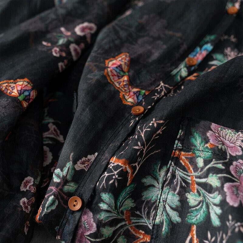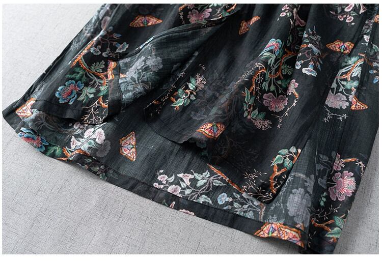 クリアランスカウンター最後の在庫レディースレトロプリントラミードレスルーズ V ネックコットンとリネン日焼け止めシャツスカート Vネック sine37292119360