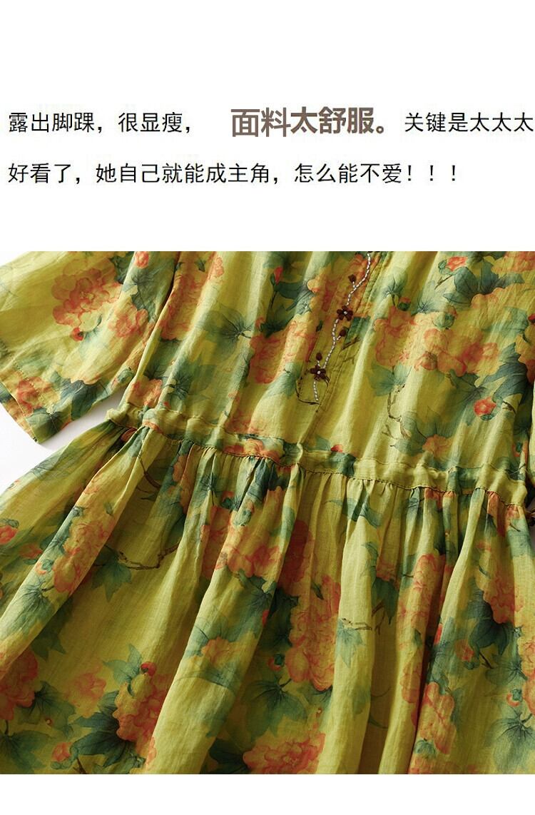 永貿易輸出ビッグブランド尾品撤退女性のレトロなプリント綿とリネンのロングスカートウエスト巾着リネンドレス コットン sine21617052104
