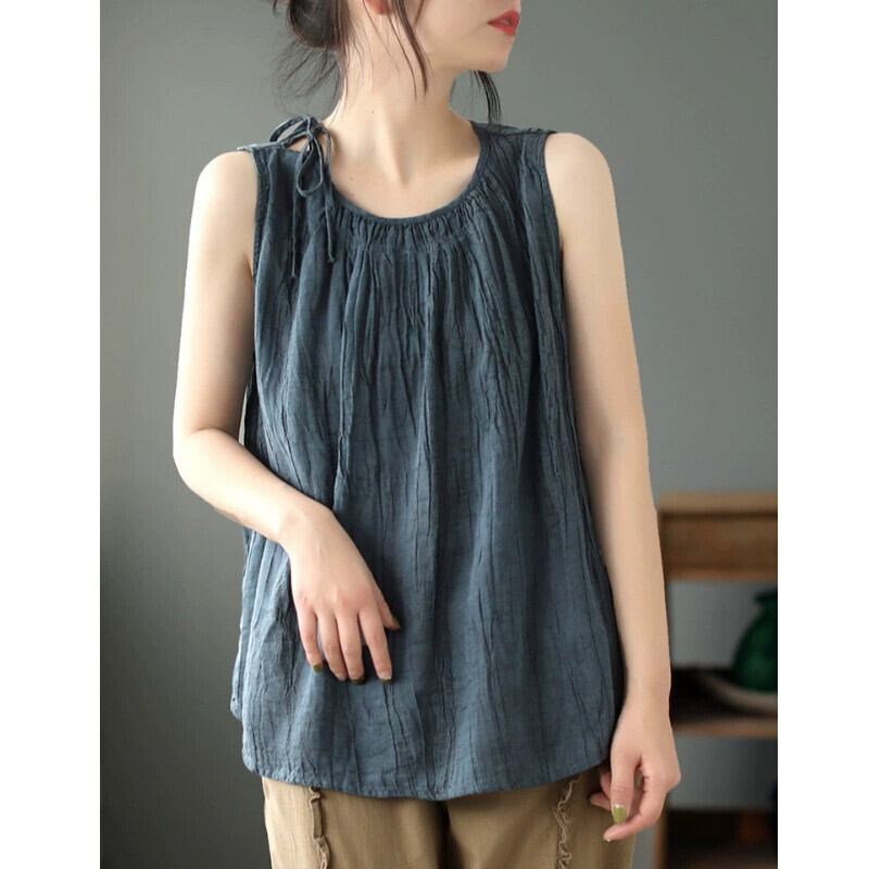 ese とオリジナルの eign trade 有名なテールグッズ女性の緩い薄手のリネントップスレトロカジュアルコットンとリネンのキャミソール夏 サマー 夏物 sine69951662521