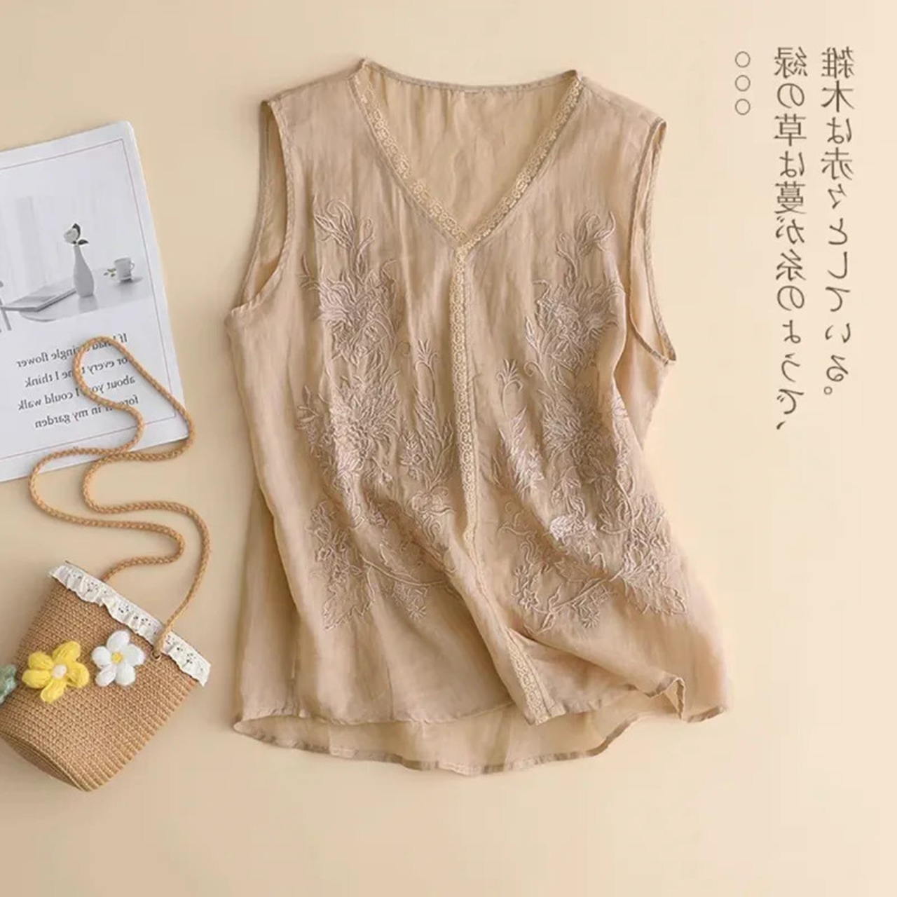 eign trade 輸出ブランド テールグッズ レディース 刺繍 刺繍 リネン ノースリーブ トップス ゆったり Vネック インナー キャミソール 薄手 レッド sine82476923336