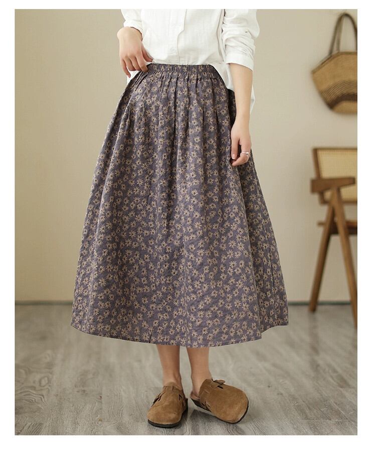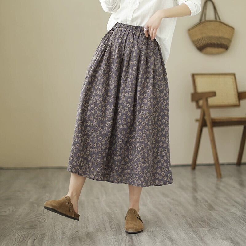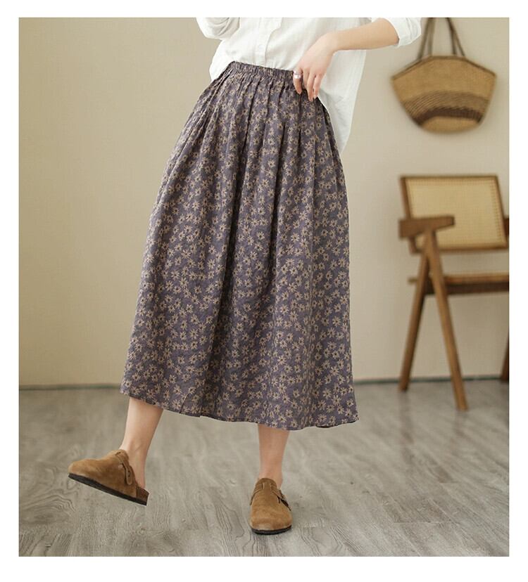 モールビッグネーム撤退最後の在庫女性の夏の薄い綿とリネンのスカートハイウエスト花柄ラミーミドル丈スカート ハイウェスト コットン サマー 夏物 sine62428661530