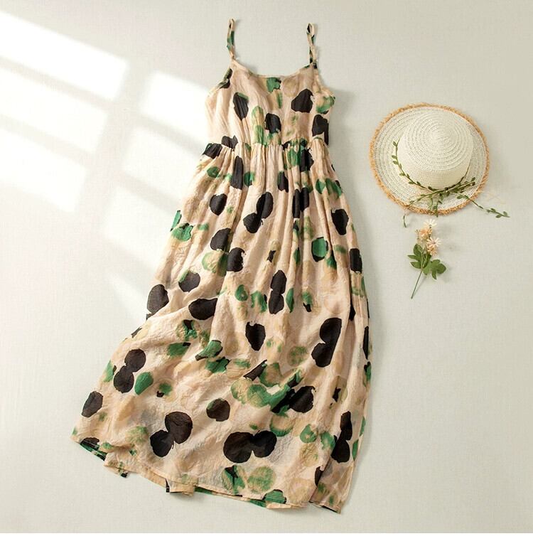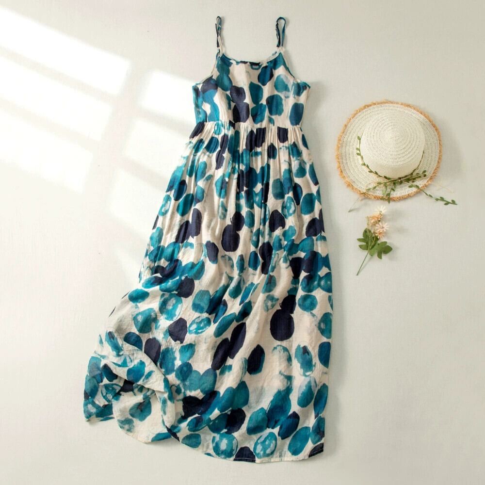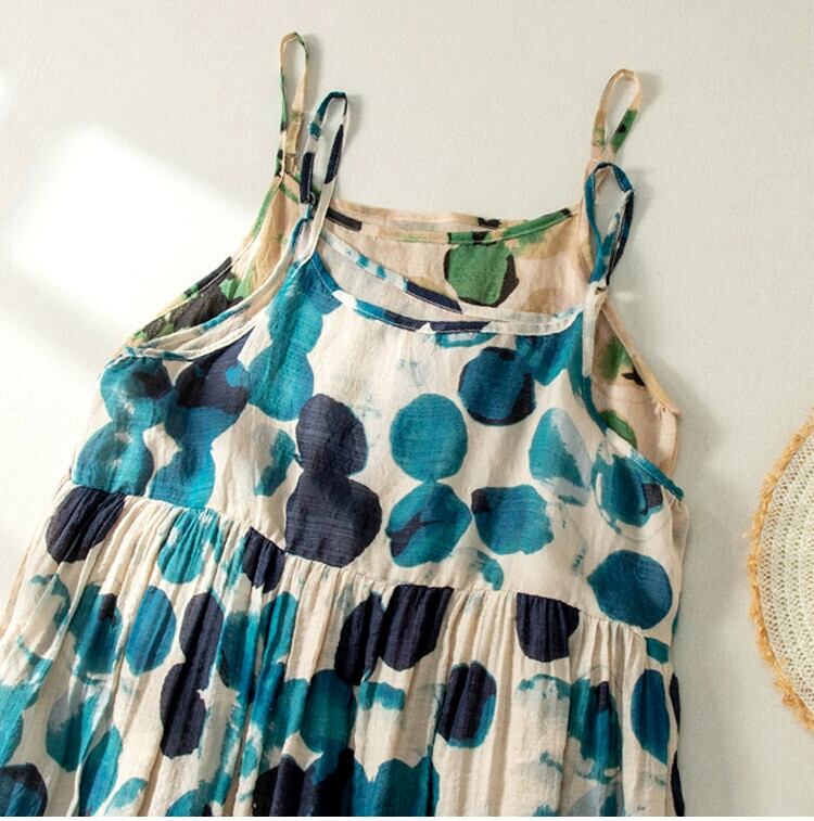 クリアランスリーク〜eseスタイルオリジナルシングル水玉プリントラミーサスペンダードレス女性夏ルーズコットンとリネンスカート サマー 夏物 sine11202556515