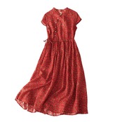 永貿易輸出ビッグブランドテール商品キャビネットから削除中国風改善された斜めラペルチャイナドレス緩い綿とリネンの大きな裾花柄ドレス コットン sine37281693464