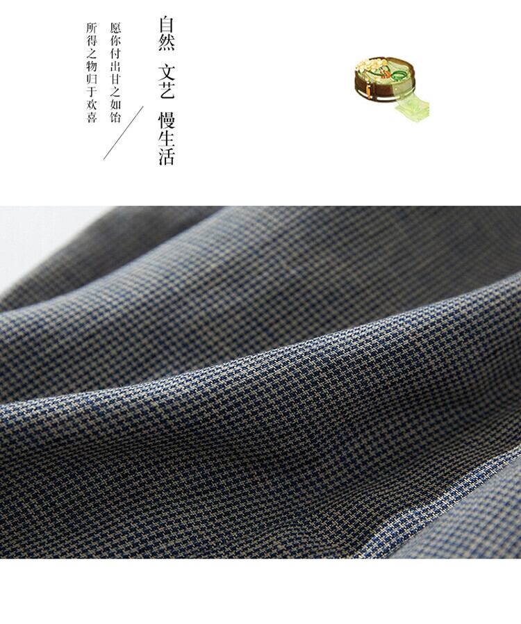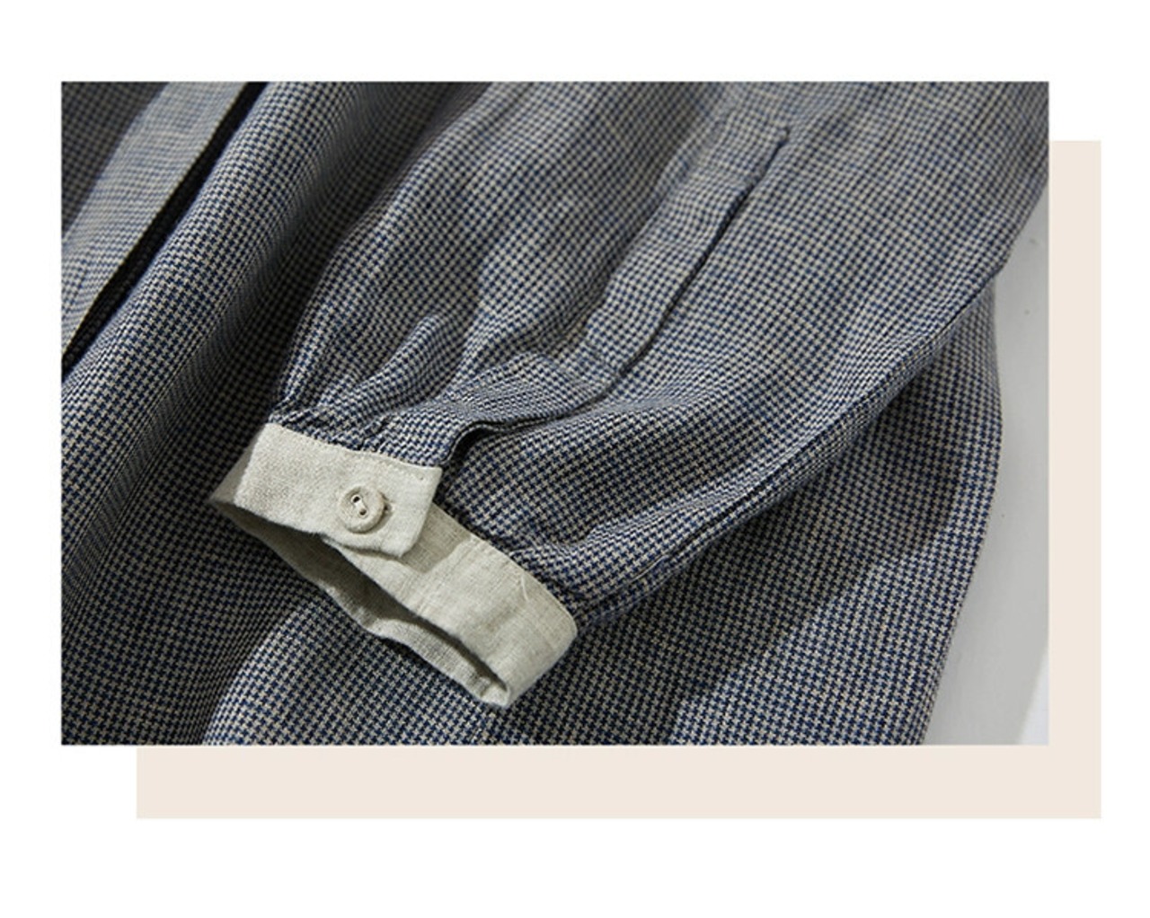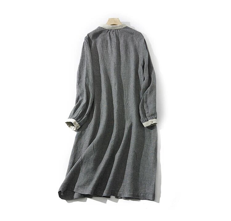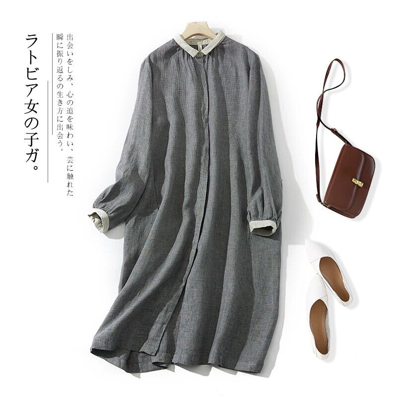 ese オリジナルシングル eign trade 有名な女性のレトロ千鳥格子リネンシャツドレスルーズラペルコットンとリネン長袖ドレス ロング sine82497664990