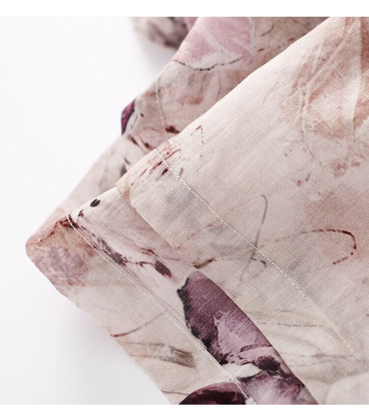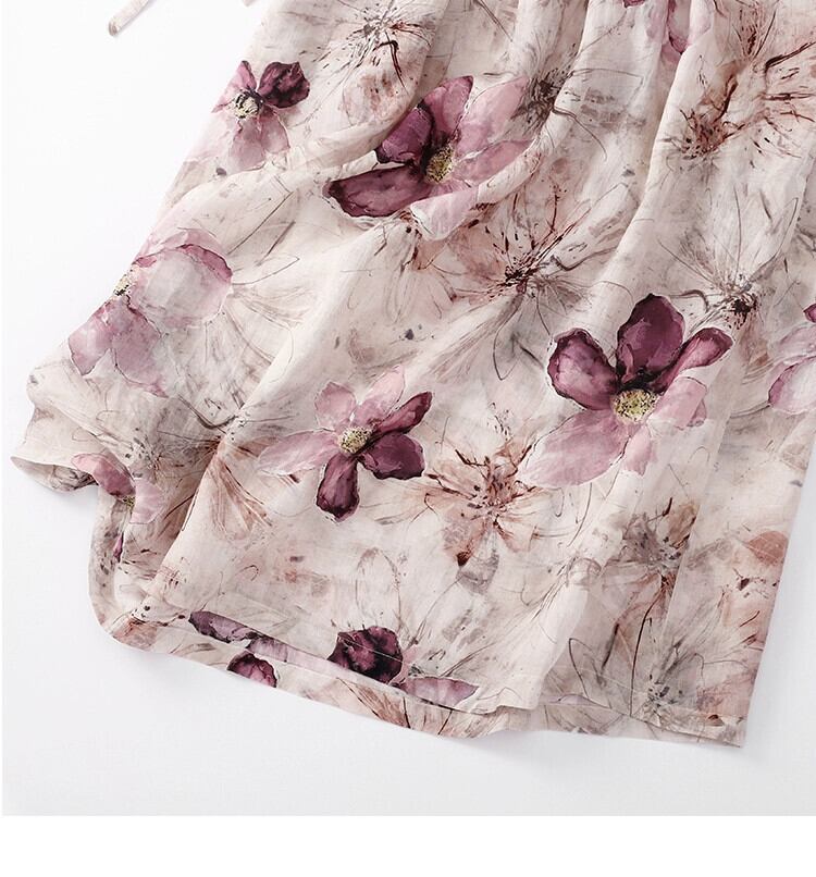ディスカウントストアショッピングモールの女性のレトロプリントリネンドレスレースアップウエスト気質綿とリネンのミドル丈スカート コットン sine66461464990