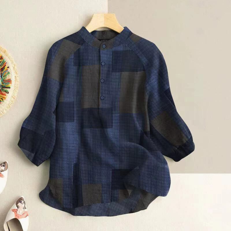 クリアランスリーク〜eseオリジナルレトロプリントコットンとリネンの七分袖シャツレディースルーズリネントップ夏 サマー 夏物 sine77262734232