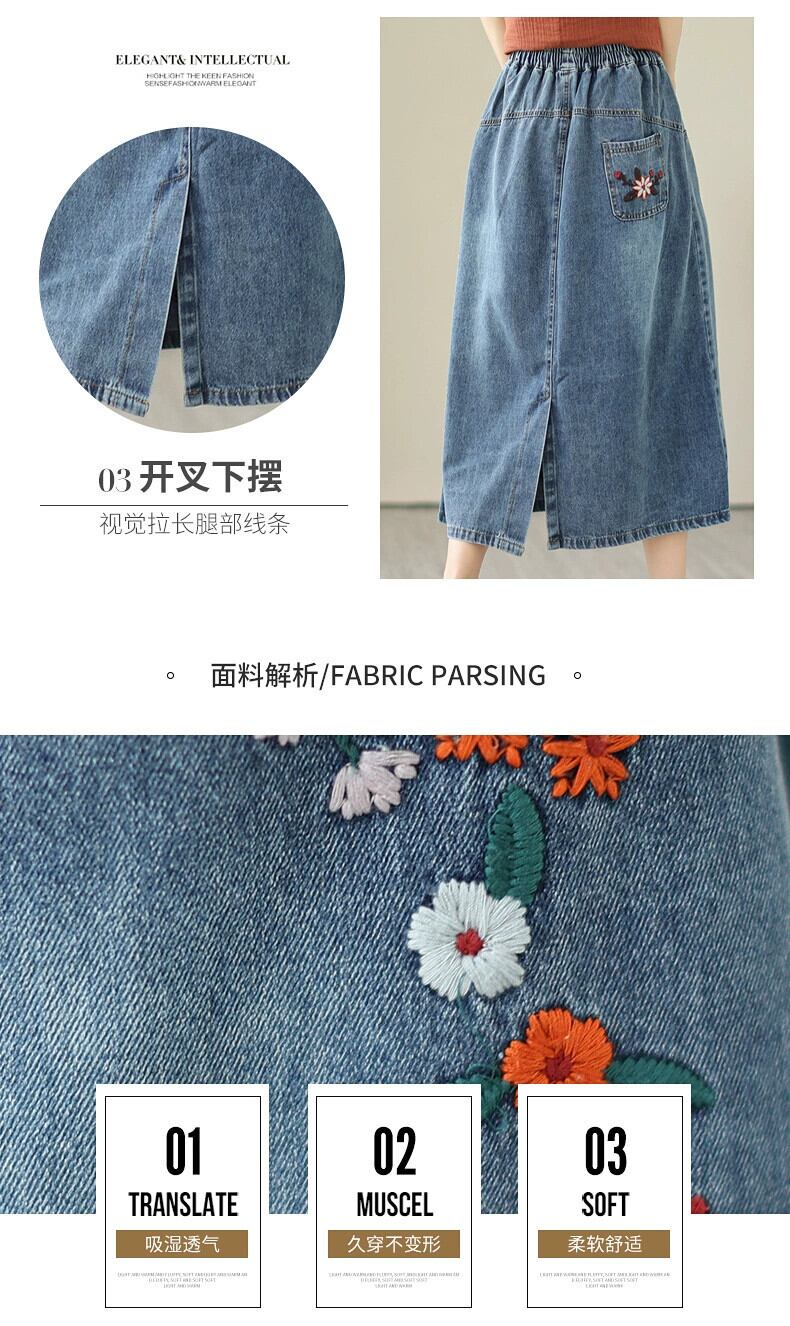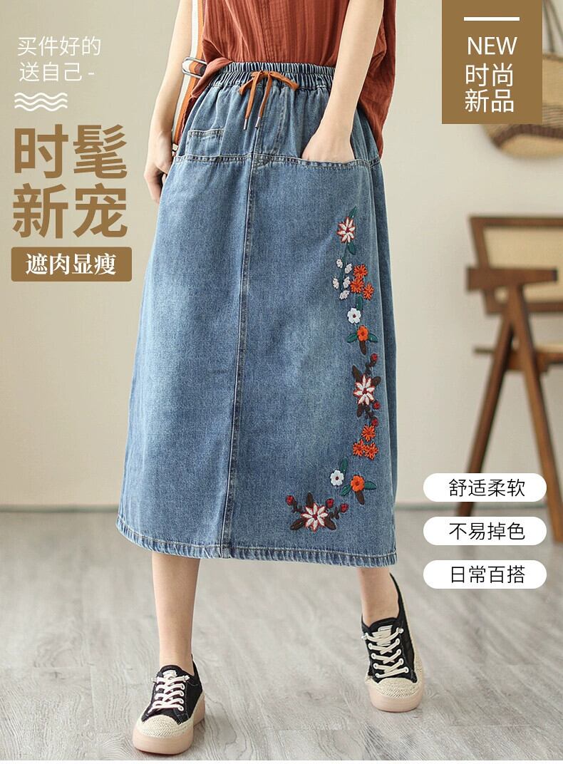 eign trade ese オリジナルシングルビッグネーム撤退レディースレトロ刺繍デニムスカート夏ルーズハイウエスト A ラインミドル丈スカート レッド サマー 夏物 Aライン sine76020374563