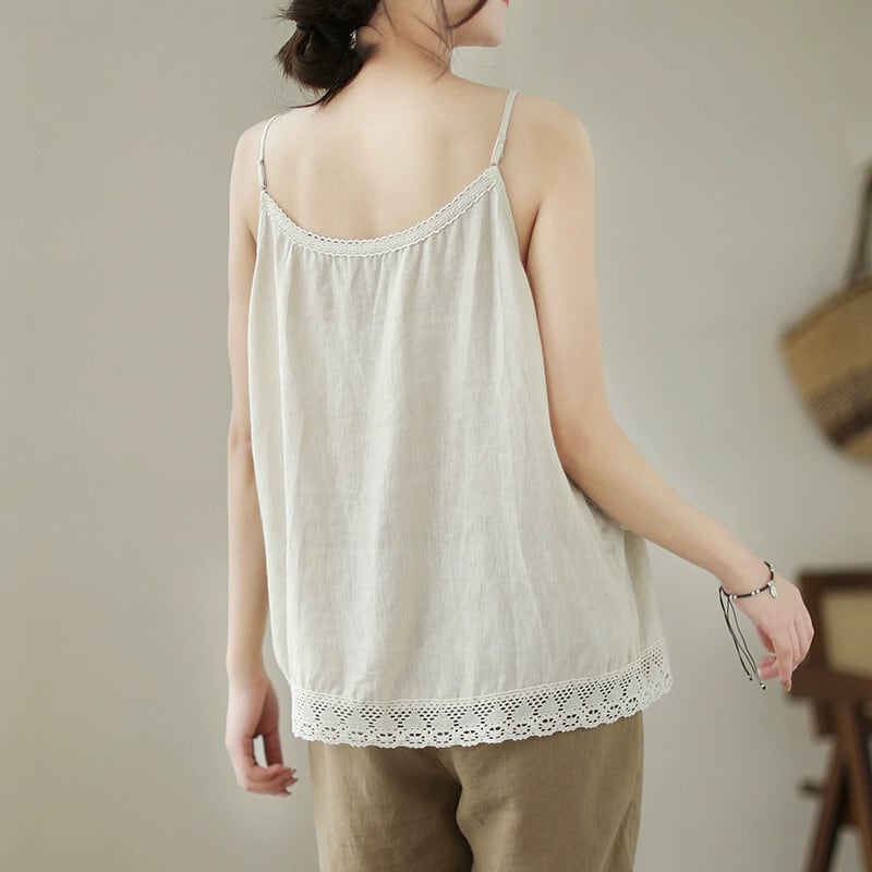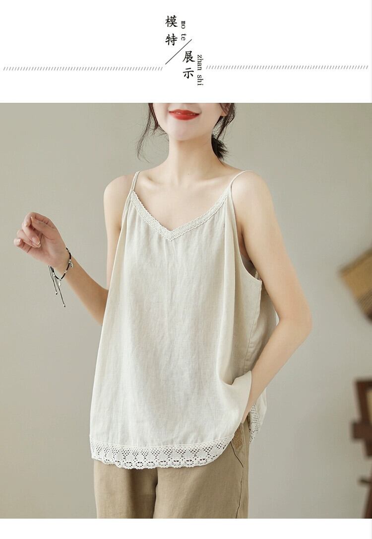 eign trade ese 有名カウンターグッズ レースエッジ リネン キャミソール レディース ゆったり V ネック 綿麻 トップス コットン Vネック sine78408704533