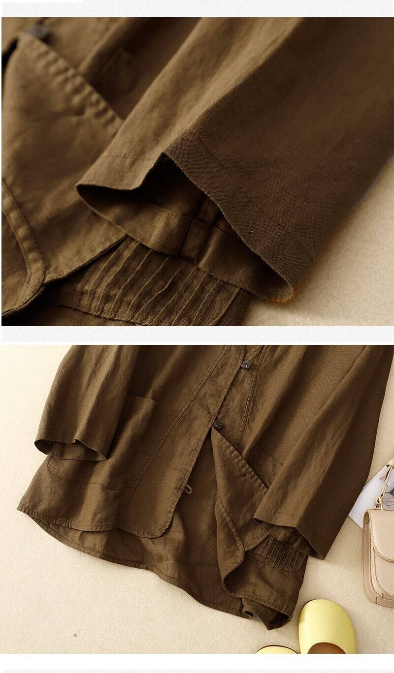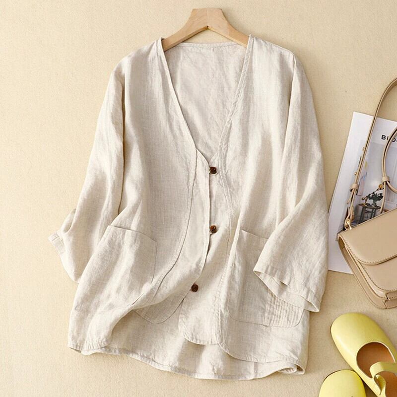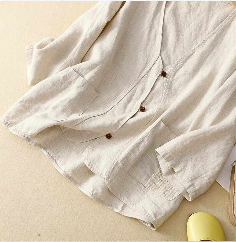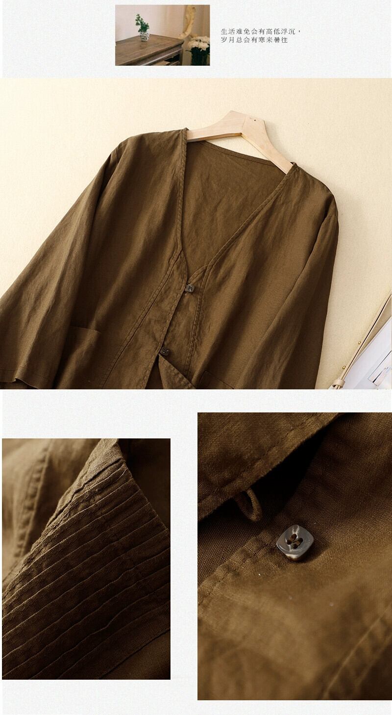 Eign Trade Export Big Tail Goods レディース クリアランス レトロ V ネック コットンとリネン 7 分袖シャツ ルーズ カジュアル リネン トップ Vネック sine73061542519