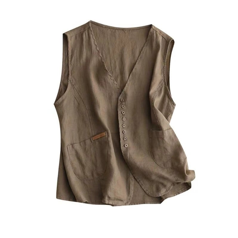 ディスカウントストアショッピングモールの女性のリネン V ネックチョッキベストレトロルーズコットンとリネンベストトップ Vネック sine18163914294