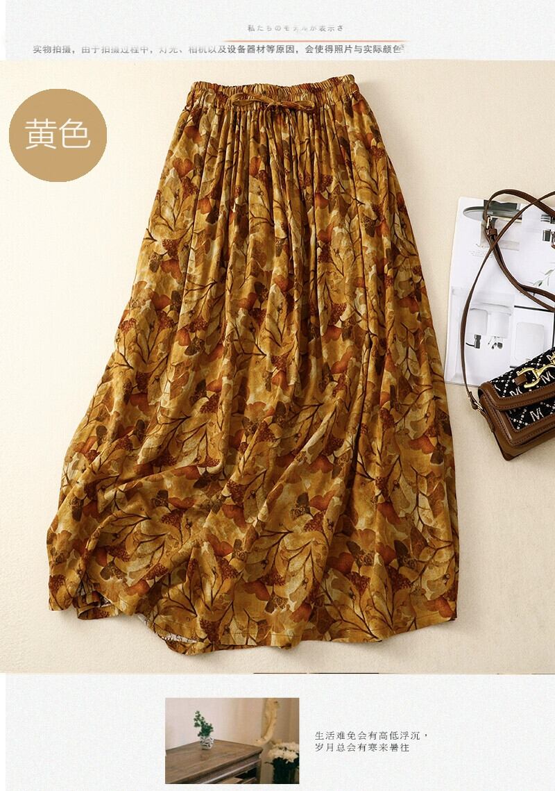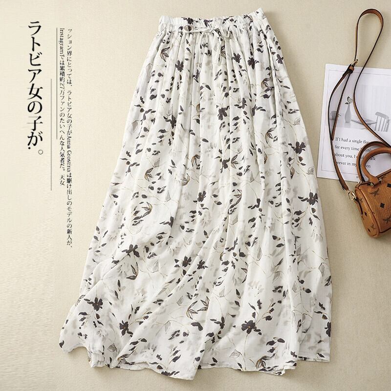 eign trade ese オリジナルハイエンドブランドの女性の花柄リネン A ライン傘スカート痩身レトロハイウエスト綿とリネンのスカート コットン Aライン sine61745898896