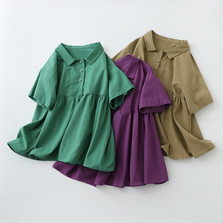 eign trade 輸出ビッグブランドテールグッズ撤退女性の半袖ドールカラーシャツトップルーズリネン半袖シャツ Tシャツ sine76269309248