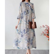 第一線ブランド eign trade 最終在庫の女性用中国風の改良された綿と麻のドレス、バックルと斜めのラペルのラミー チャイナ ロング スカート付き コットン sine51005236424
