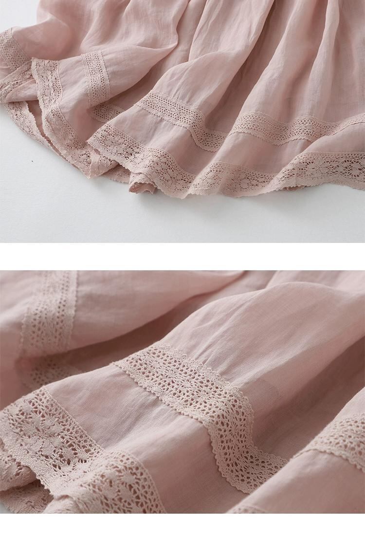 eseオリジナルのシングルエイト貿易の有名な女性のハイウエスト綿とリネンのAラインロングスカート、ゆったりとした刺繍の二重層リネンスカート コットン sine28826694248