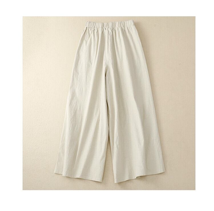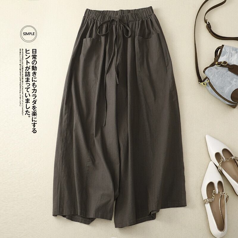 クリアランスリーク〜eseオリジナルのレトロな綿とリネンのワイドレッグパンツの女性、緩い巾着ハイウエストカジュアルリネン9点パンツ コットン sine37639348991