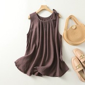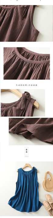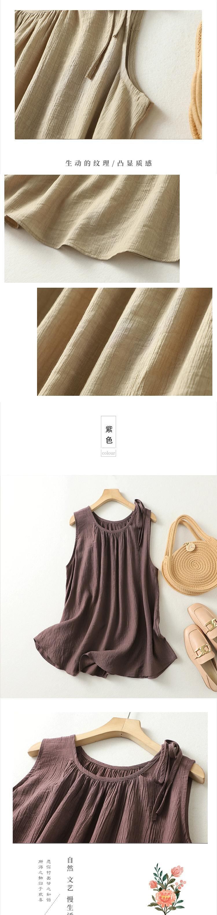 ディスカウントストアショッピングモールソリッドカラーコットンとリネンベストTシャツレディースルーズプリーツレースアップリネンノースリーブトップ sine32528426402