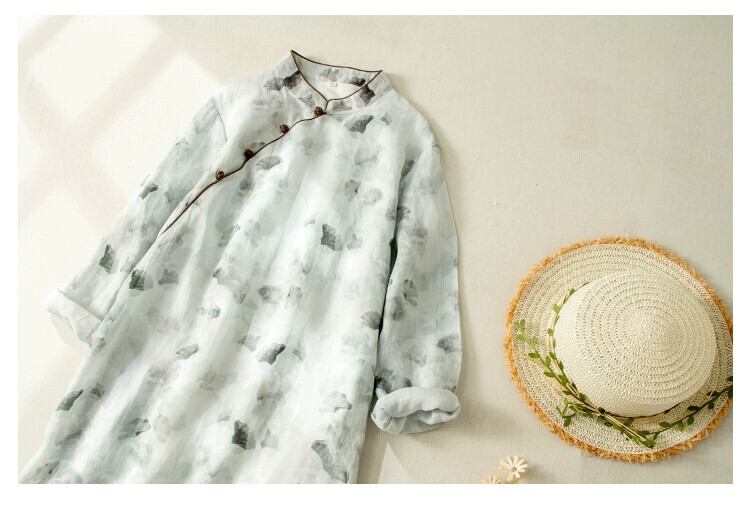 クリアランスカウンター最後の在庫の女性の中国風の斜めラペルラミードレスレトロプリントコットンとリネンのチャイナロングスカート sine91475028183