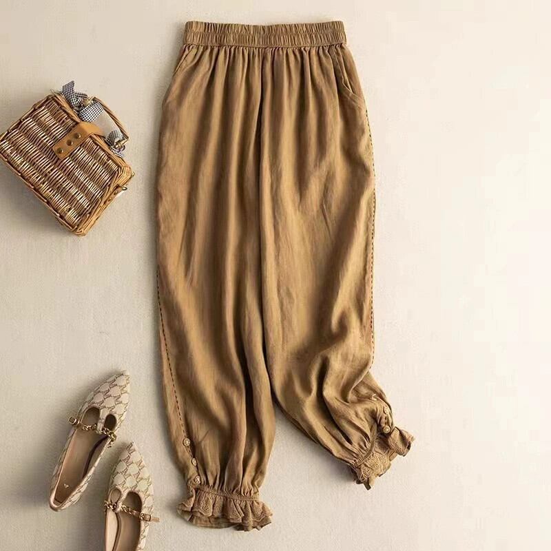 Eign Trade Export Big Tail Goods 撤退レディース無地多用途レースアンクレット 9 点パンツ夏の綿とリネンカジュアルハーレムパンツ コットン サマー 夏物 ソリッドカラー sine66854185967