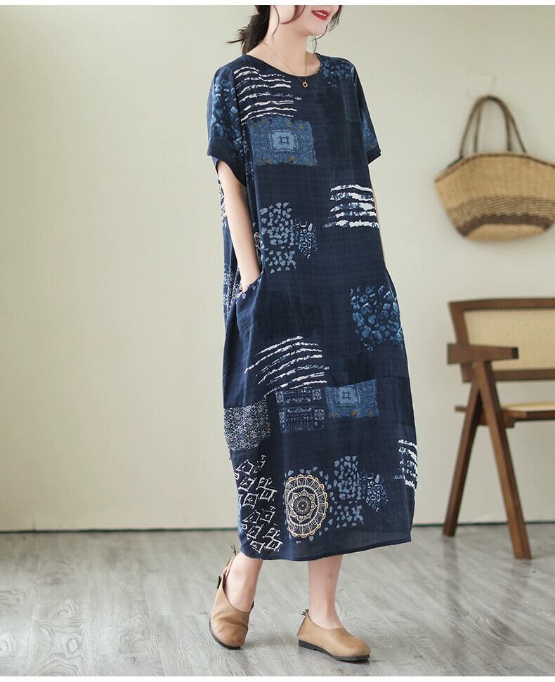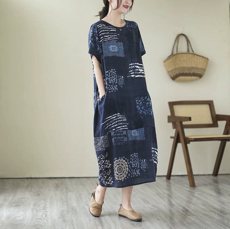 モールの有名人の最後の在庫の女性のエスニック スタイル プリント ラミー ドレス ルーズ コットンとリネンの膝上のミドル丈スカート sine54438706382