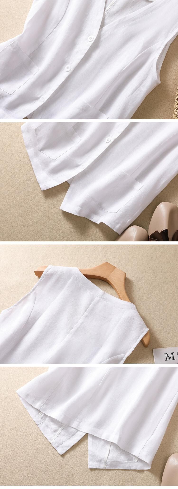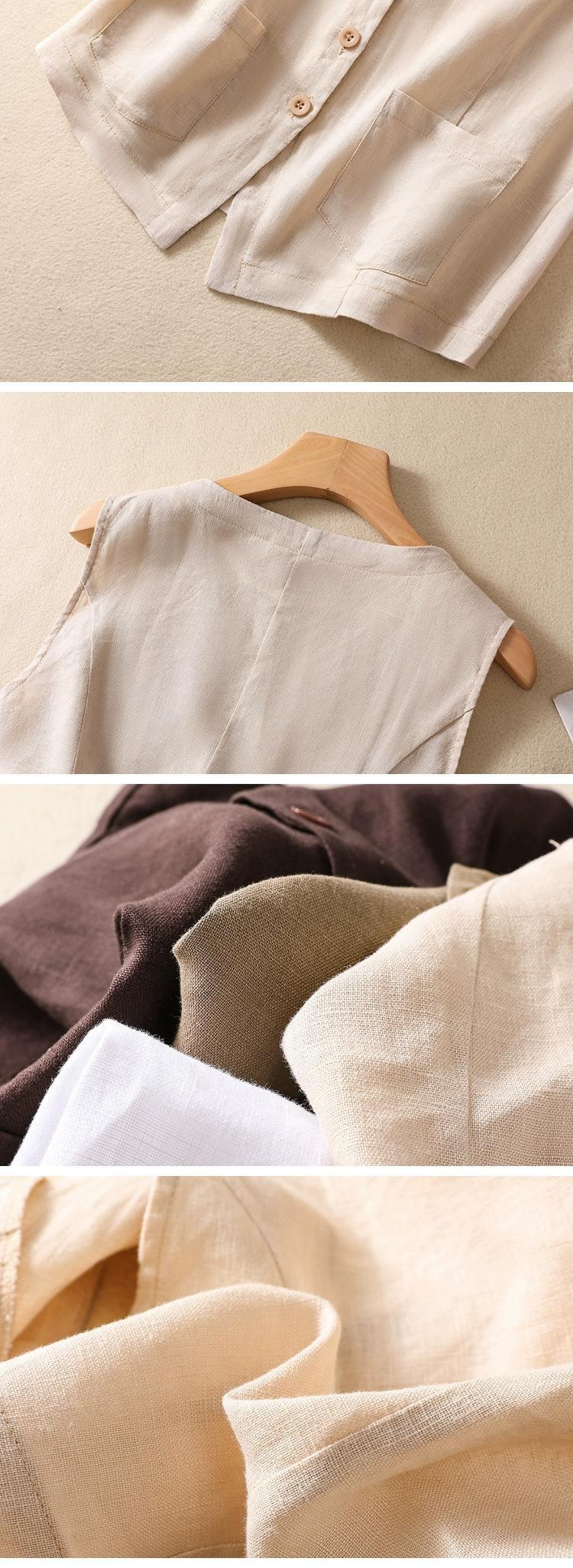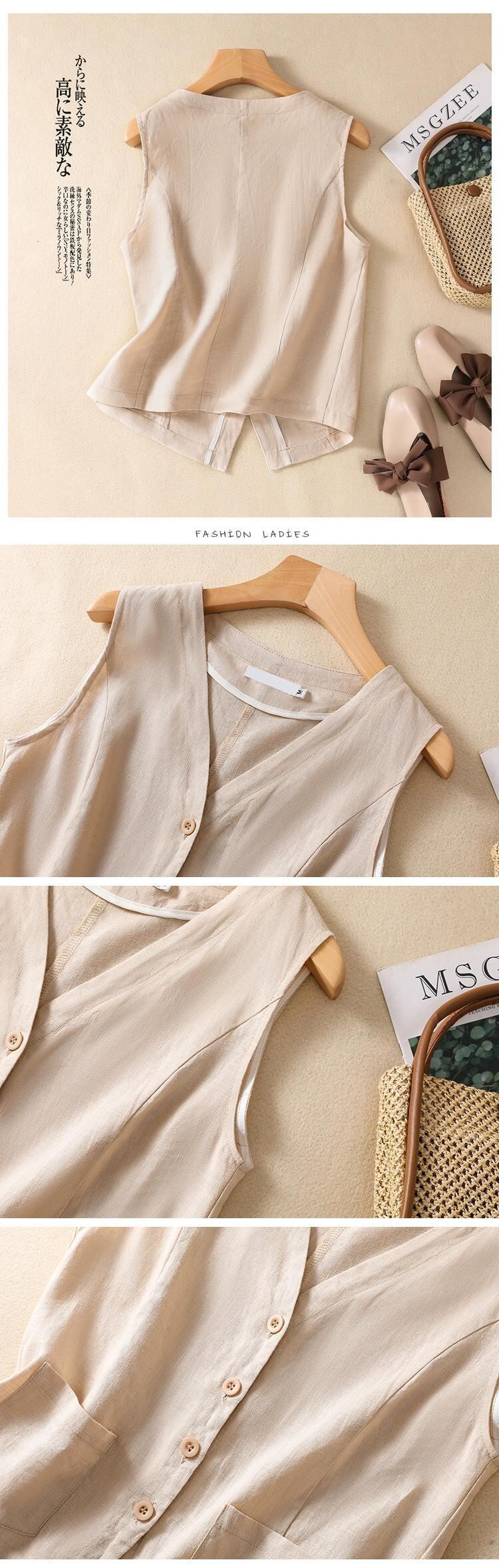 Eign Trade 輸出ブランド尾品薄い綿とリネンのチョッキアウターベスト女性夏ルーズ V ネックリネンベストトップ コットン サマー 夏物 Vネック sine79452215903