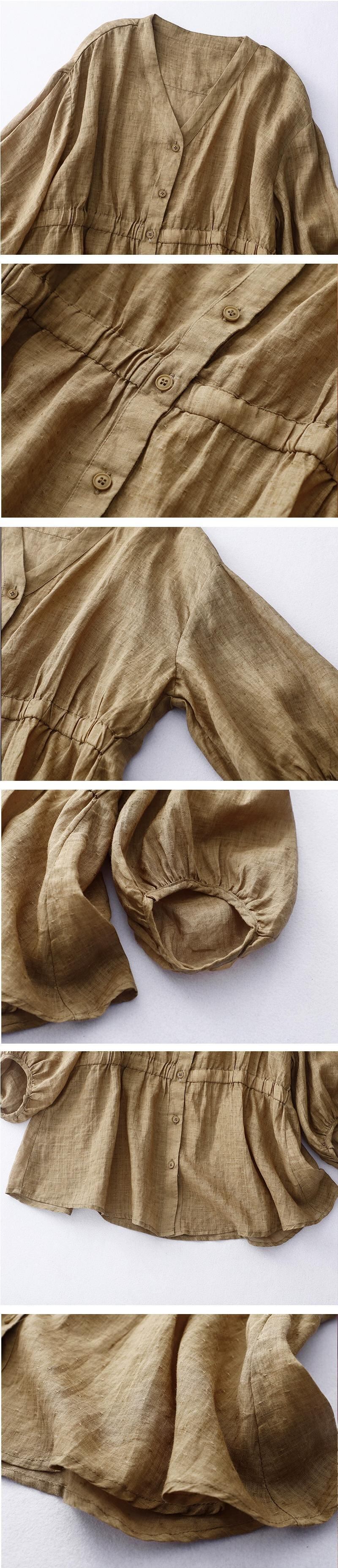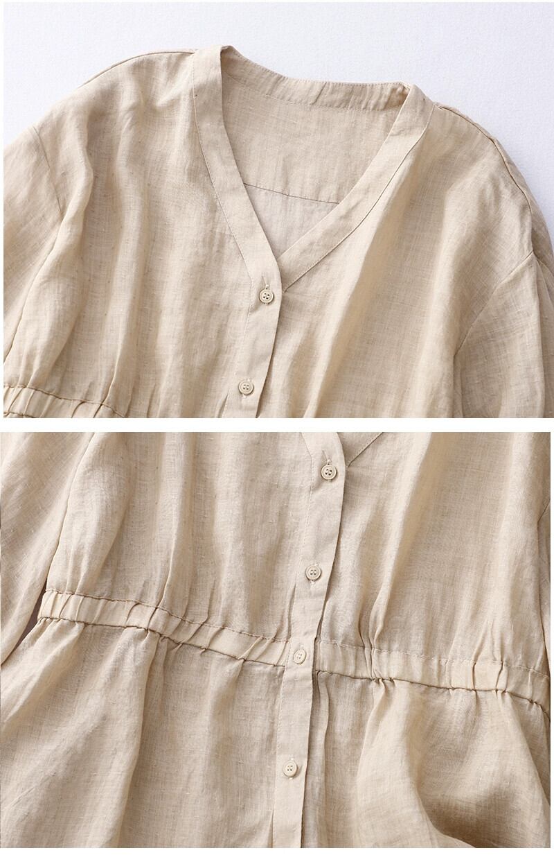 ディスカウントストアショッピングモールの女性のレトロな V ネック綿とリネンのシャツトップ夏ルーズリネン半袖シャツ コットン サマー 夏物 Vネック sine60096242801