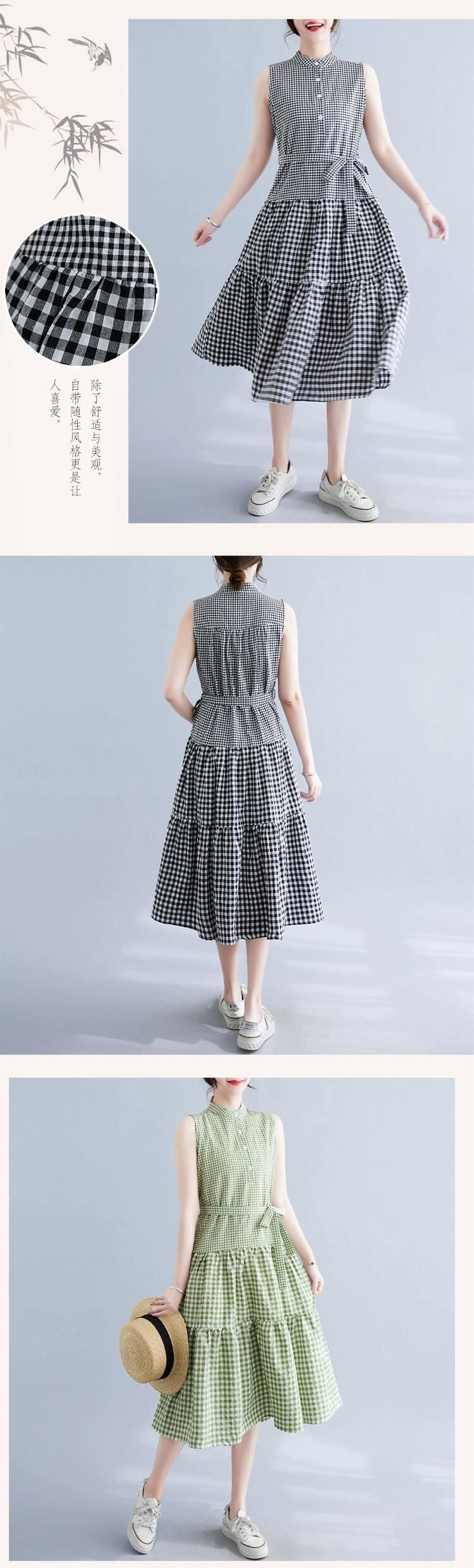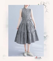 ese オリジナル シングル eign trade 有名な女性の ese age-reducing チェック柄のベスト ドレス ウエスト レースアップ ノースリーブ シャツ スカート sine17138406305