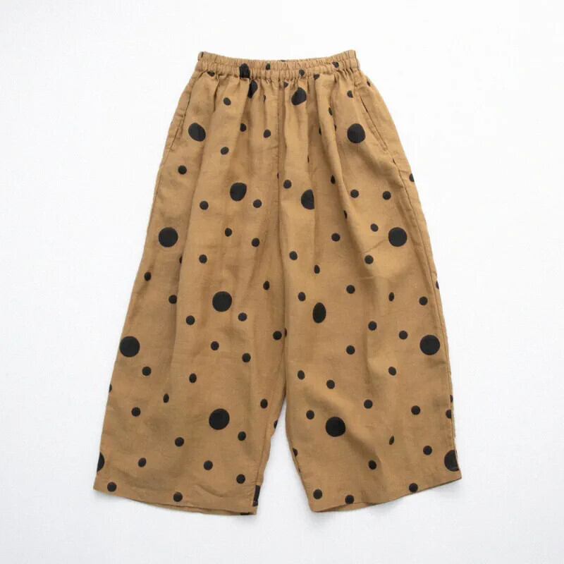 Eign Trade Export Big Tail Goods 撤退レディース ese 水玉模様のコットンとリネンのワイドレッグ パンツ、ルーズ ハイウエスト リネン 9 点パンツ、薄手 sine24971843478