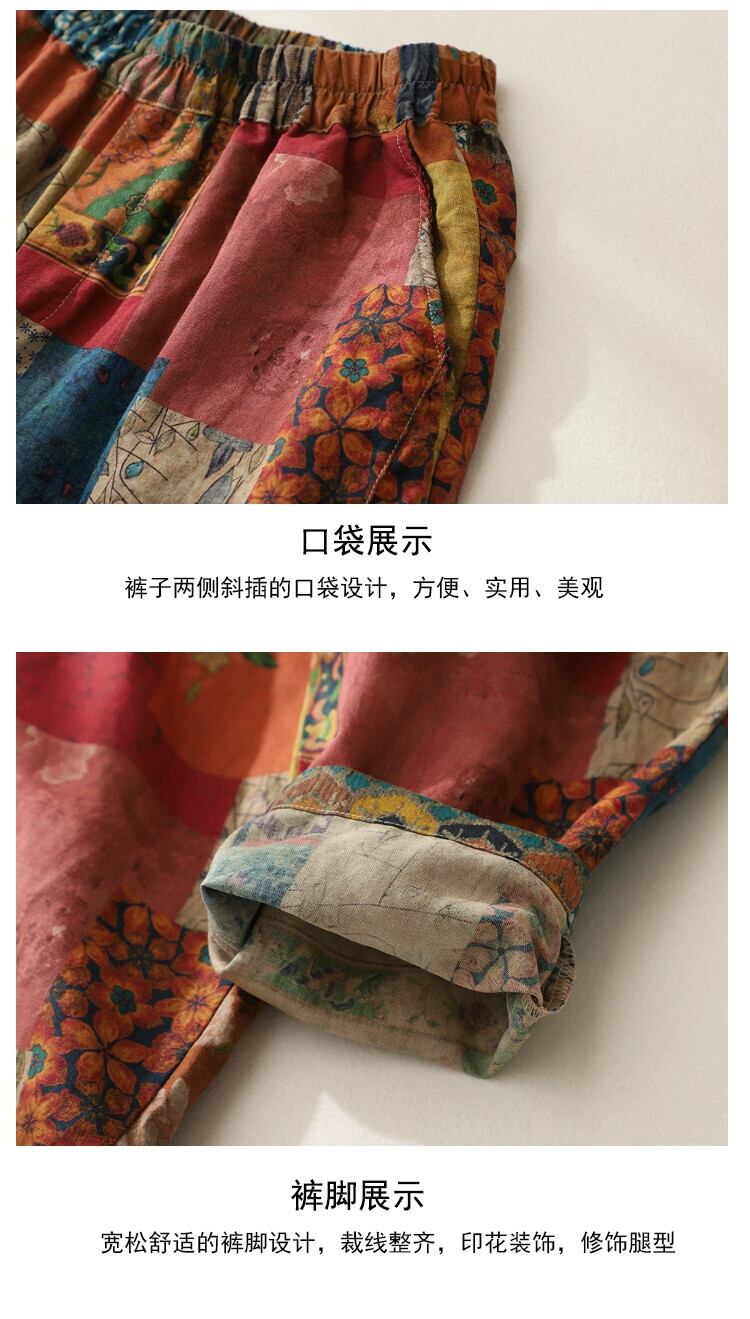 クリアランスカウンター最後の在庫、レトロコットンとリネンプリントハーレムパンツレディース、ルーズスリミングリネン9点カジュアルパンツ夏 サマー 夏物 sine8375457548