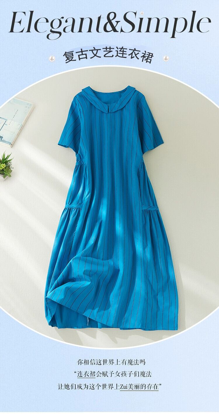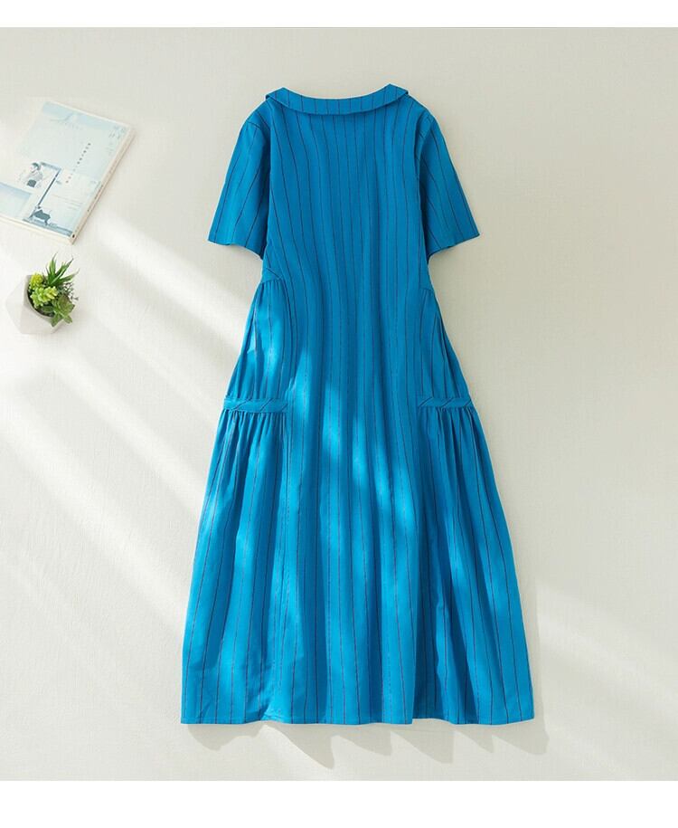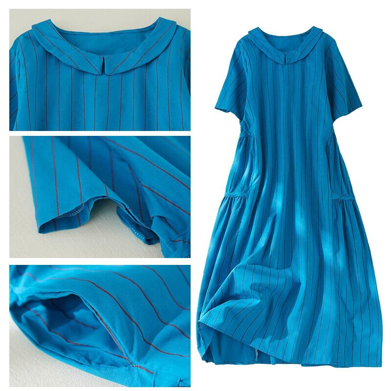 Eign Trade Export Big Tail Goods 撤退の女性の ese 綿とリネンのストライプのドレス年齢を軽減する緩い半袖リネン スカート コットン sine77047946221