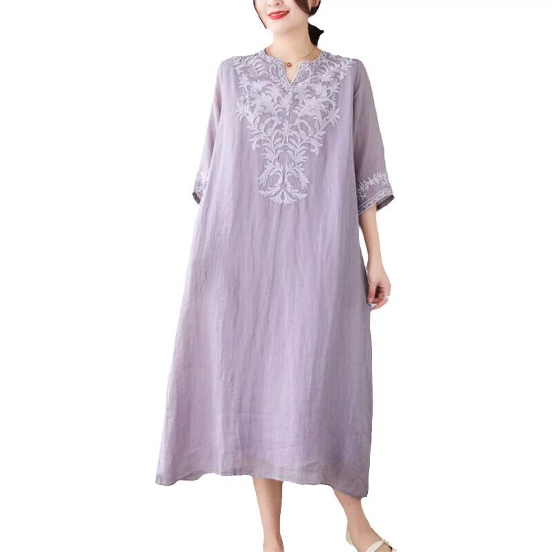 永貿易輸出ビッグブランド尾品撤退女性のラミー刺繍ミッドスリーブドレス夏ルーズコットンとリネン A ラインスカート レッド サマー 夏物 Aライン sine33265525317