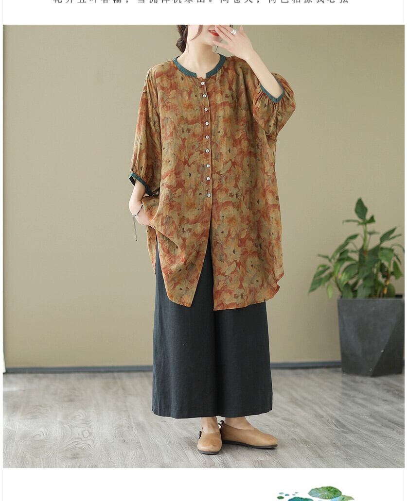 eign trade counter ブランドテールグッズ女性のレトロプリントミッドレングスコットンとリネンシャツ夏ルーズリネン日焼け止めシャツトップ サマー 夏物 sine26007266851