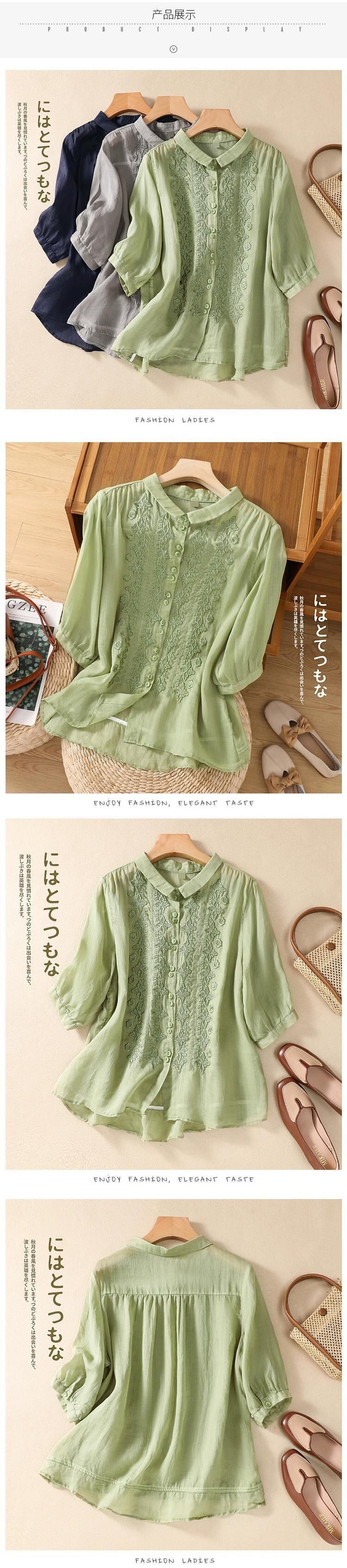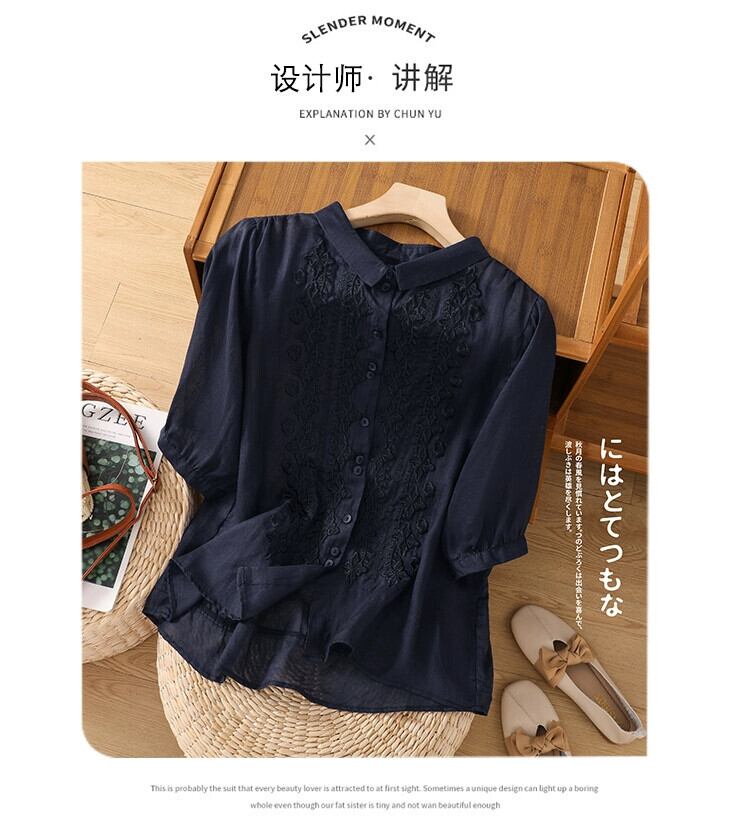 eign trade ese big-name カウンター 在庫切れ 文学 レトロ 刺繍 ラミー シャツ レディース カジュアル リネン 七分袖 トップ レッド sine32186372005