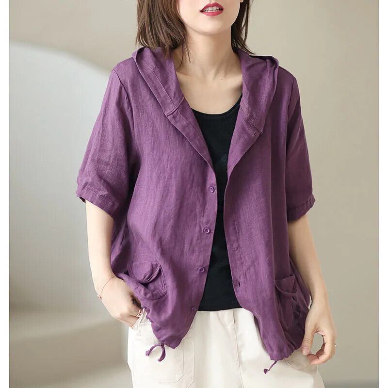 クリアランスカウンター最後の在庫レディースリネンショートフード付きジャケット夏ルーズコットンとリネン日焼け止めシャツトップ サマー 夏物 sine42333801823