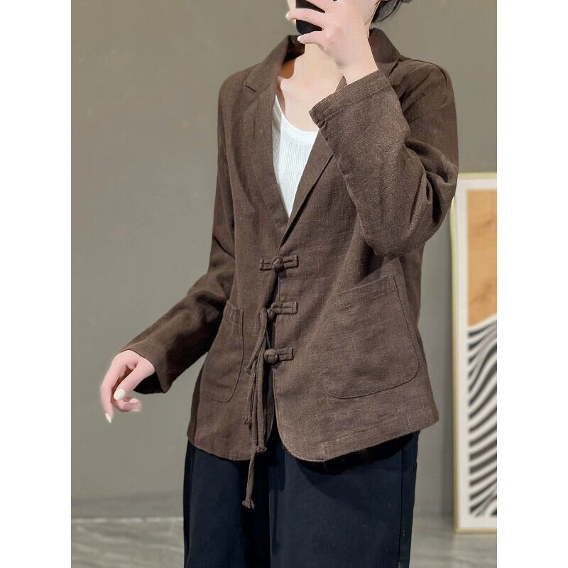 クリアランス漏れ〜既製のレディース通勤シンプルリネンスーツトップルーズコットンとリネンスーツカラージャケット sine62452393177