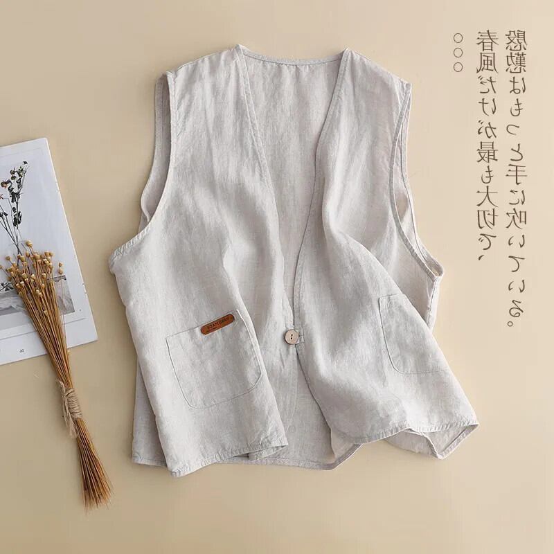 キャトルクリアランスハイエンドテールグッズレディースブラウンリネンベストトップ薄手のコットンとリネンのVネックベストジャケット sine99272128891