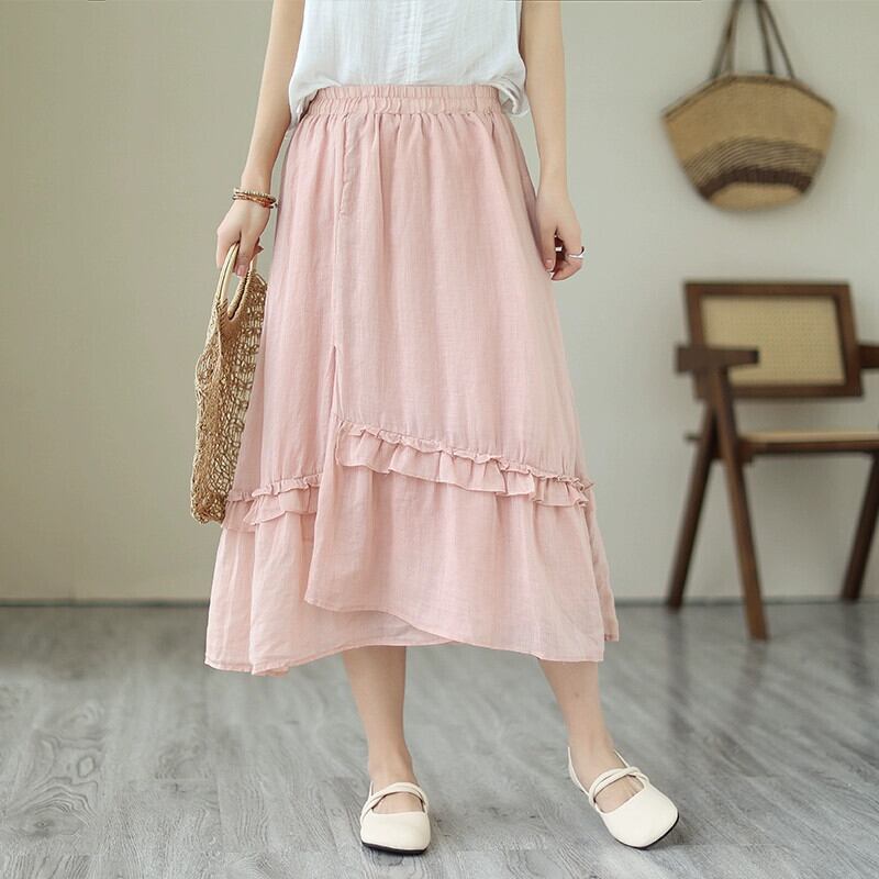 ファーストラインブランド eign trade 最終在庫レディース ese ラミースカート ハイウエスト イレギュラー コットンとリネン A ライン ミドル丈スカート Aライン sine99954136169